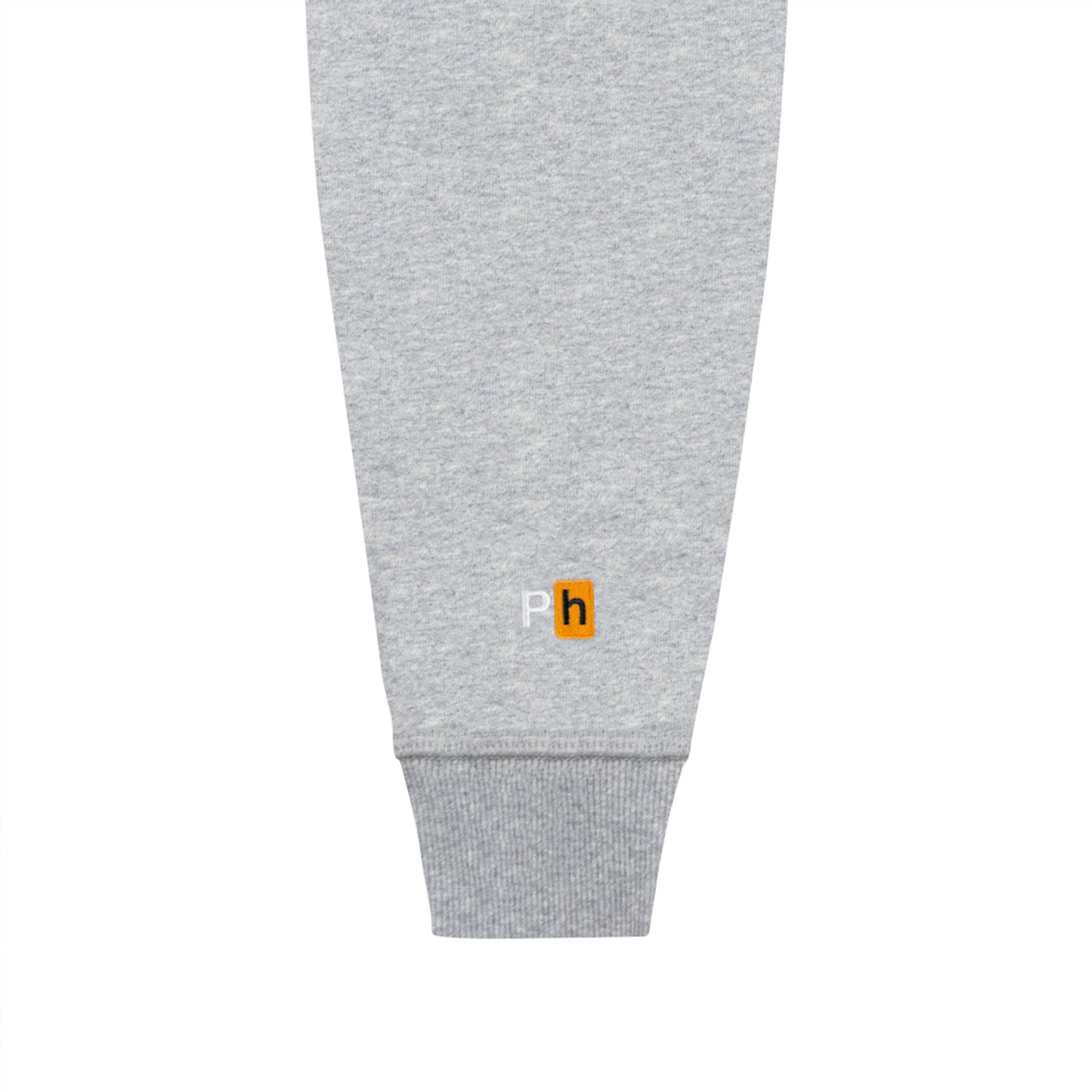 A premium cotton crewneck with the Pornhub logo in a smooth flat silkscreen finish on the chest, and embroidered initials above the cuff.