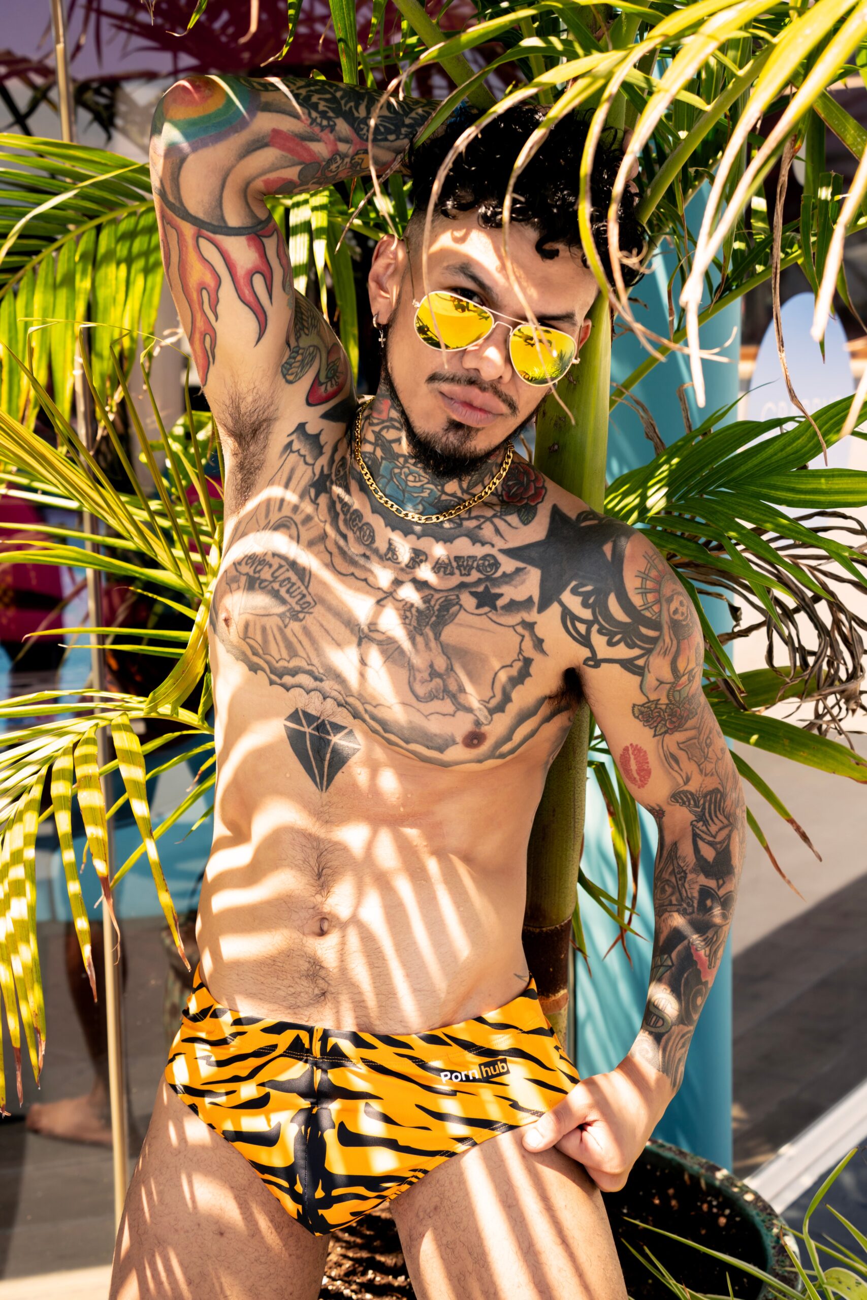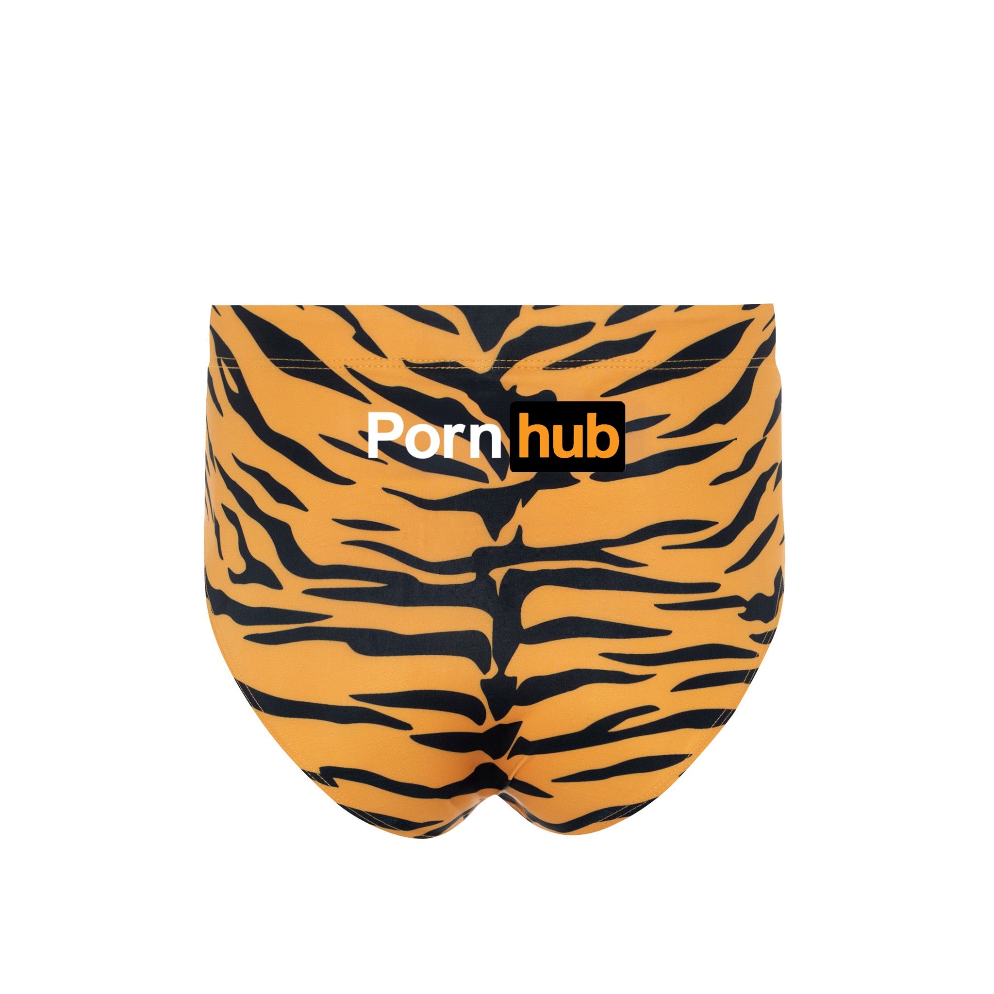 Go wild or go home in the Tiger Print Swim Briefs. Covered in an all-over tiger print, this standout piece features a subtle Pornhub logo on the front and a bold, oversized logo on the back. It’s the perfect mix of untamed style and iconic branding